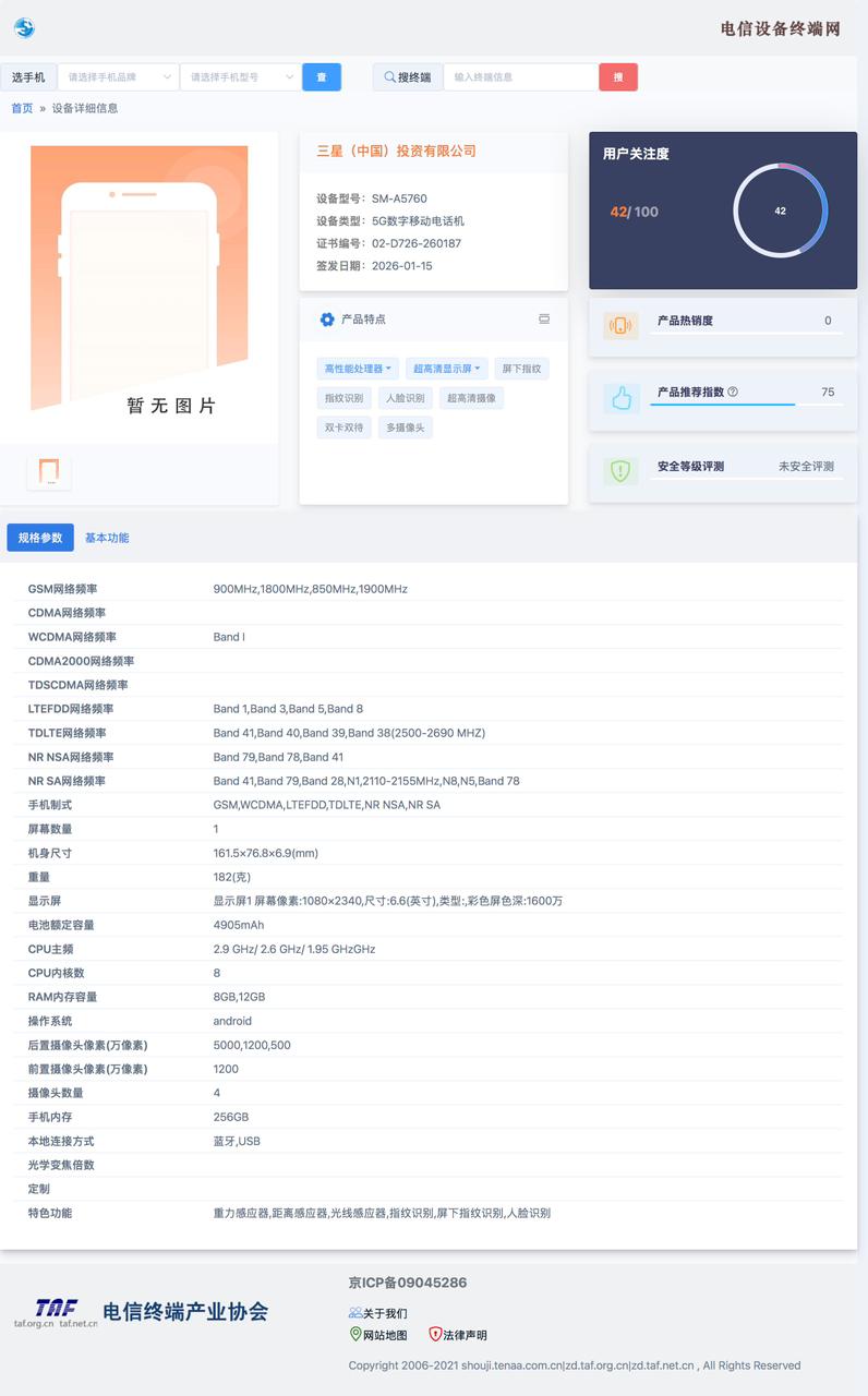 Notably, the same model number was also previously spotted on 3C certification, along with TUV listings (including global variants), confirming 45W fast wired charging support. Furthermore, a recent report suggests that Samsung may use flexible OLED display panels supplied by TCL CSOT for the Galaxy A57 5G.