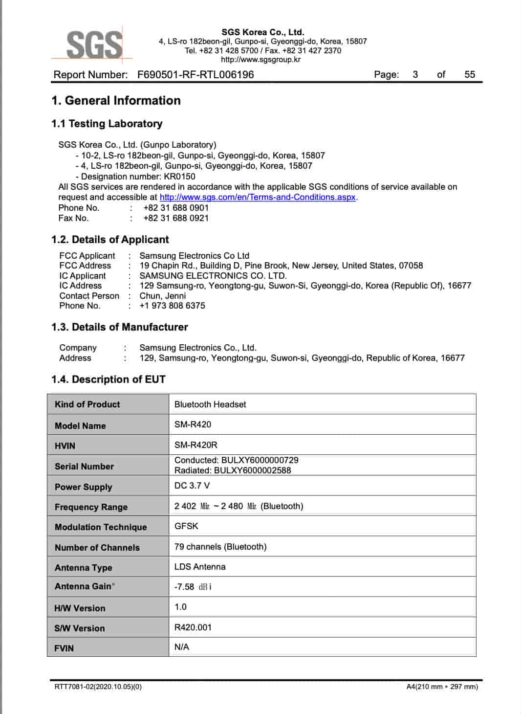 Samsung’s upcoming Galaxy Buds 3 FE earbuds device carries the model number of ‘SM-R420’ and it has been listed on the FCC database as a Bluetooth headset. DC 3.7 V power supply, 2402 ~ 2480 MHz Bluetooth frequency range, LDS antenna type, -7.58 dBi antenna gain, 79 channels, GFSK modulation technique, and Bluetooth Classic (76.5%) + Bluetooth LE (84.9%) mode of operations are few of its FCC-revealed connectivity specs. The FCC database also reveals it to support a software version of ‘R420.001’ and a hardware version of ‘REV1.0’.
