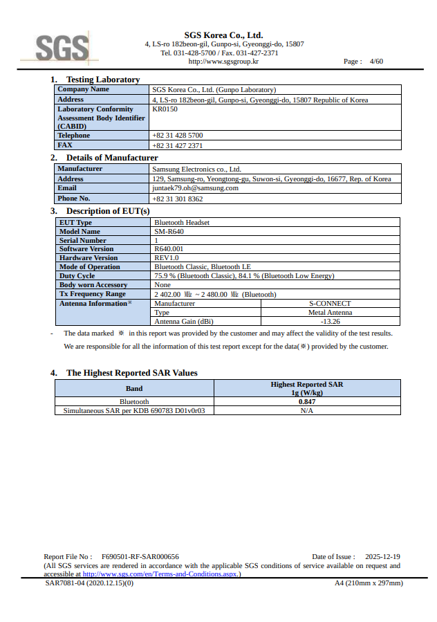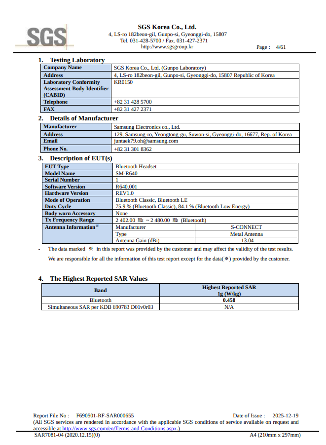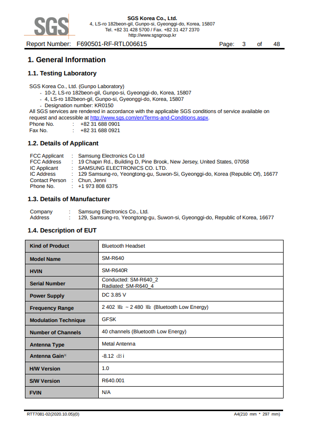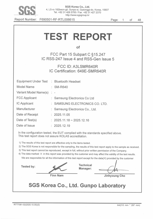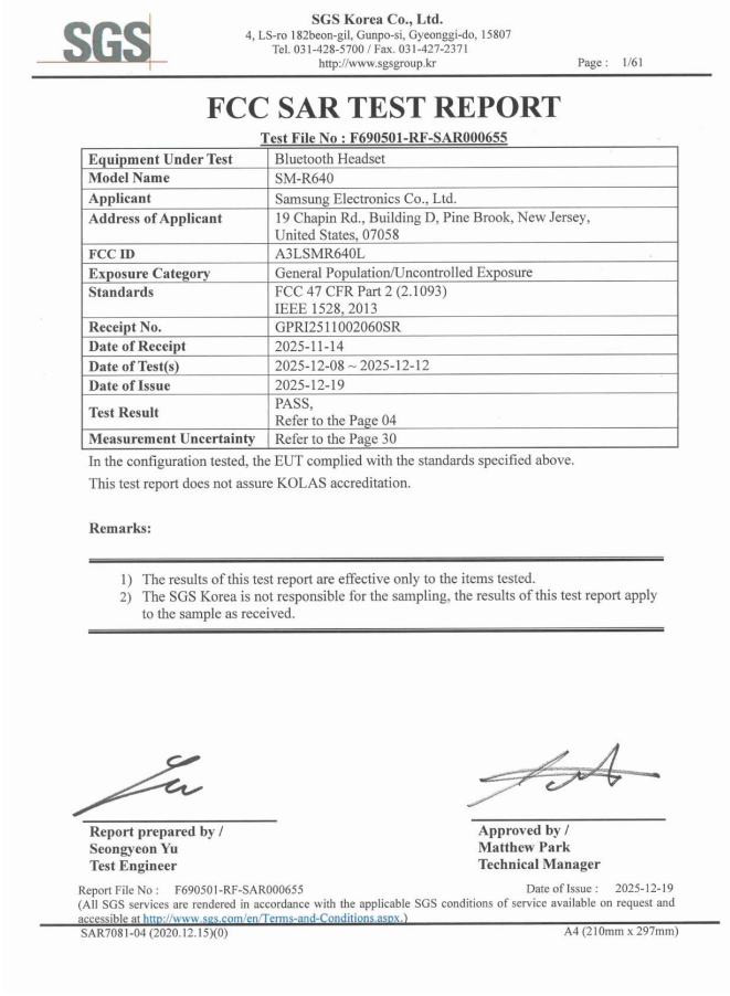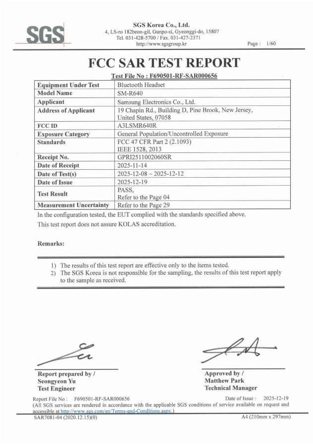 Samsung Galaxy Buds 4 Pro (SM-R640) – FCC Certification