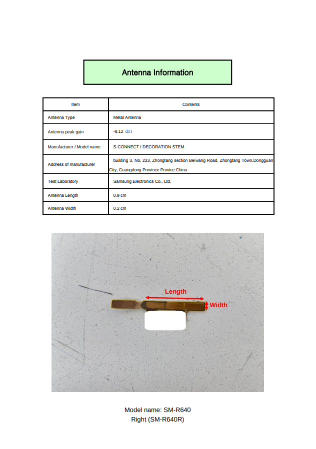 The Samsung Galaxy Buds 4 Pro earbuds device which carries the model number of ‘SM-R640’ has received the FCC certification with the FCC IDs of ‘A3LSMR640L’ and ‘A3LSMR640R’ respectively for the left (‘SM-R640L’) and right (‘SM-R640R’) earbuds units. It is categorized as a ‘Bluetooth headset’ and via the FCC database, specs which include 3.85V DC power supply, 2402MHz ~ 2480MHz Bluetooth frequency range, Bluetooth Classic (75.9%), Bluetooth Low Energy (84.1%, 40 channels), GFSK – π/4DQPSK – 8DPSK modulations, 79 channels, metal antenna, -7.75 dBi/-8.12 dBi antenna gain, ‘REV1.0’ hardware version, and ‘R640.001’ software version have been revealed for the device. Additionally, the antenna images of the left and right earbuds have also been listed on the certification database, with length and width of 0.9cm and 0.2cm respectively. Also, the FCC label will be on the charging case as the earbuds units are too small to feature it.