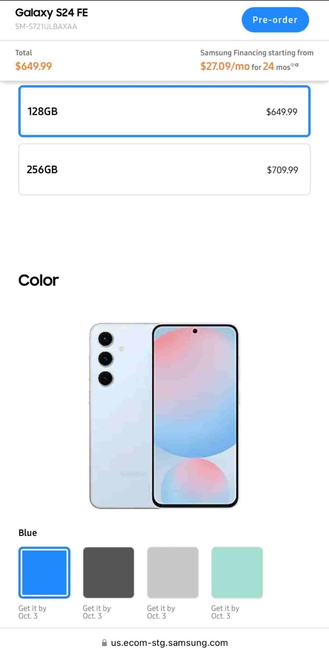 Galaxy S24 FE will be available in Blue, Graphite, Gray, and Mint color options in North America. A yellow version will also come but it is said that it will not be available in the US. Galaxy Tab S10+ and Galaxy Tab S10 Ultra will be available in Moonstone Gray and Platinum Silver color options. Galaxy S24 FE will reach US buyers by October 3 while Galaxy Tab S10 lineup is said to go on sale on October 4.