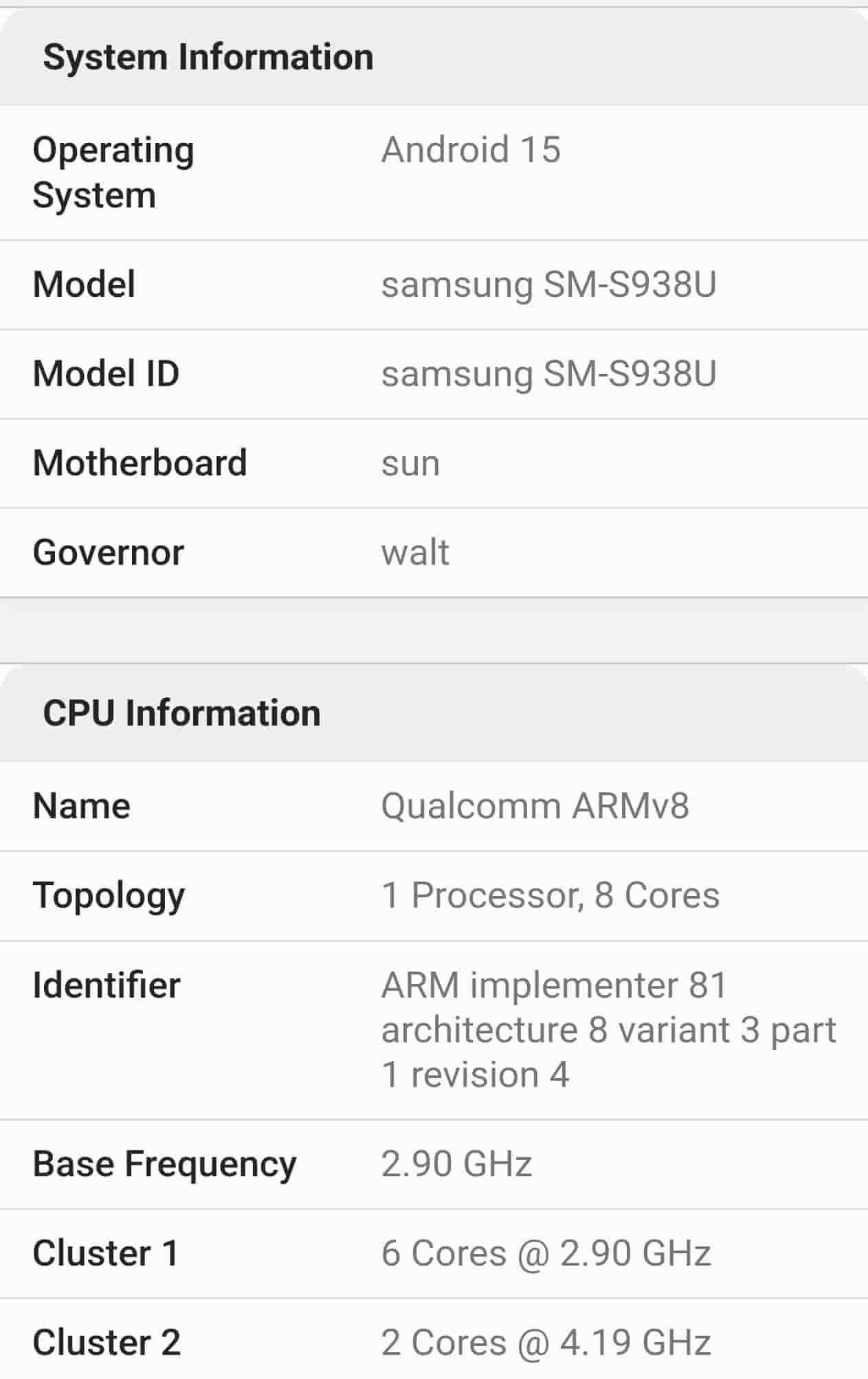 According to the above listing, the device has received a 3069 single-core score and a 9080 multi-core score. The device may arrive with Snapdragon 8 Gen 4 SoC though the core frequencies are different- 2 cores clocked at 4.19GHz and 6 cores clocked at 2.90GHz. This suggests that it may be the underclocked version of Snapdragon 8 Gen 4. The device is also revealed to run on Android 15 OS.