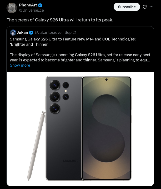 Samsung Galaxy S26 Ultra Revealed to Feature New M14 and COE Technologies for its Display: Expected to Become Brighter and Thinner