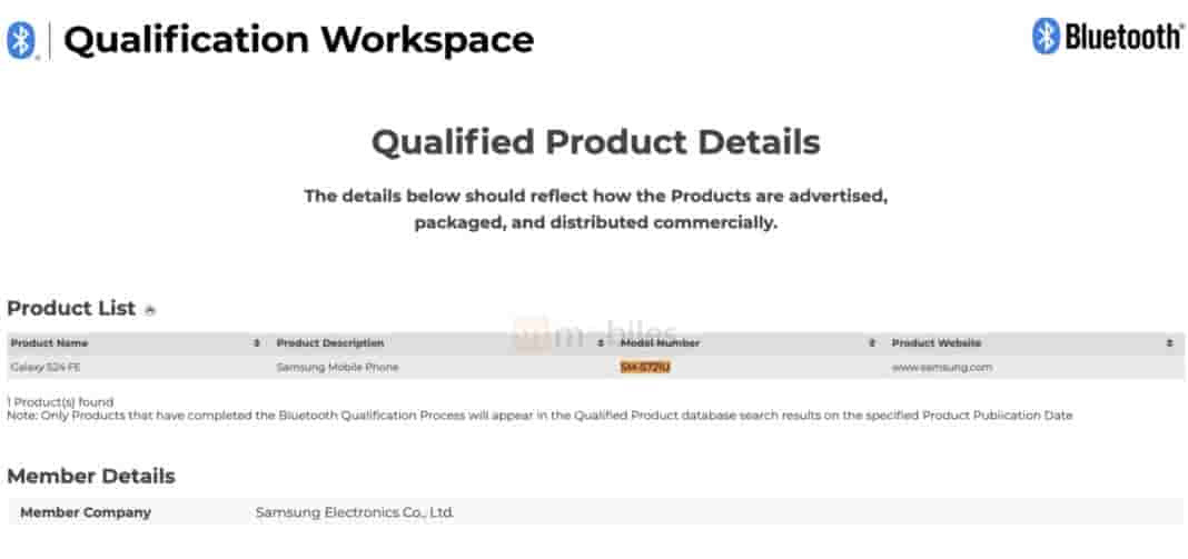 Meanwhile, the Galaxy S24 FE US version has also appeared on the Bluetooth SIG certification website with model number SM-S721U.