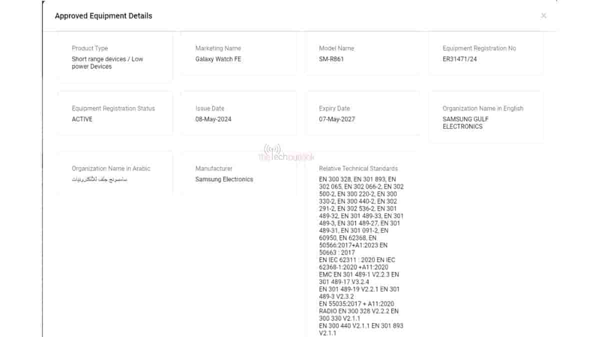 Now, it appears that the smartwatch will indeed be called the Samsung Galaxy Watch FE, as per the recent TDRA certification. The listing confirms that the model SM-R861 is the WiFi + Bluetooth variant of this smartwatch.