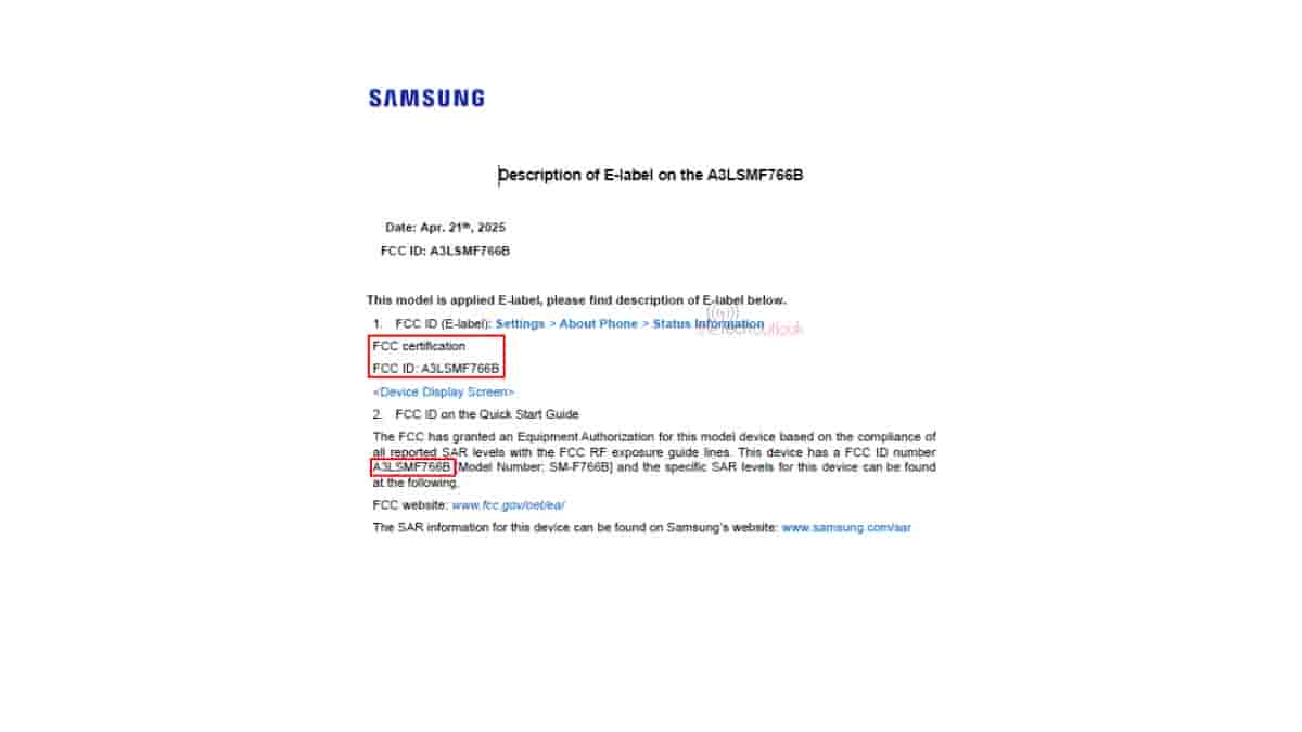Samsung Galaxy Z Flip 7 with model numbers “SM-F766B” and “SM-F766U” spotted on FCC certification