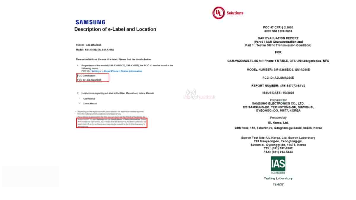 The Samsung Galaxy A36 5G models bearing the model numbers of ‘SM-A366E/DS’ and ‘SM-A366E’ have appeared on the FCC database, and the two have been certified with the FCC ID of ‘A3LSMA366E’. The former will have a dual SIM card tray suggested by the ‘DS’ in the model number, whereas the latter won’t.