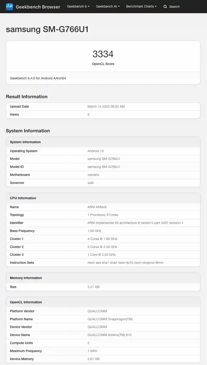 Coming to its Geekbench listing, it is the carrier-unlocked US variant of the smartphone with the model number – ‘SM-G766U1’ that has appeared on the Geekbench database. The single-core, multi-core, and OpenCL scores of the device are respectively 1157 points, 3288 points, and 3334 points.