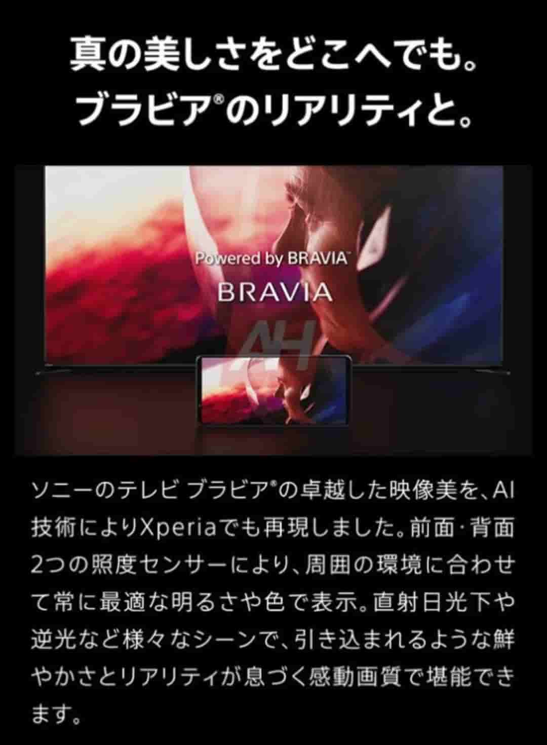 With two illuminance sensors on the front and back, the display of the smartphone always displays the optimal brightness and color according to the surrounding environment. The outstanding image beauty of Sony’s BRAVIA TV has been reproduced on Xperia with AI technology. The display has a higher peak brightness than the previous model and a Sunlight Vision function that detects when the display is in direct sunlight and further improves the visibility of the display.