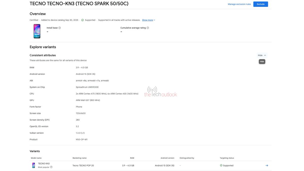 Techo Spark 50/50C’s Google Play Console Listing Reveals it to be a rebranded version of Tecno Pop 20 Aka Tecno Spark Go 3 Aka Tecno Pop X