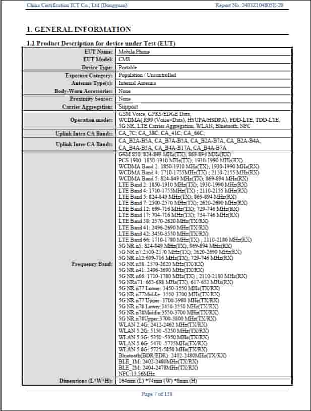 The Camon 40 Premier 5G device of Tecno bears the model number of ‘CM8’ and has received the FCC certification with the FCC ID of ‘2ADYY-CM8’. This device is suggested to measure 164 x 74 x 8 mm in dimension, and will support 2G/3G/4G/5G network, Wi-Fi with dual band support, Bluetooth, and NFC connectivity. It is also pointed out to pack a battery with a battery range of DC 3.86V, with fast charging support of up to 70W (charging adapter model number – ‘U700TSA’). Also to note, the FCC listing also confirms that there is also a 12GB/256GB storage model for the device too.