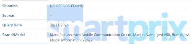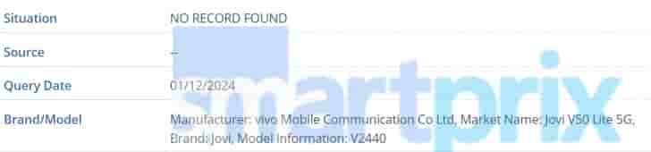 Apart from this Jovi Y39 5G also has a Chinese variant with Vivo branded model number V2444A that is spotted on the database.