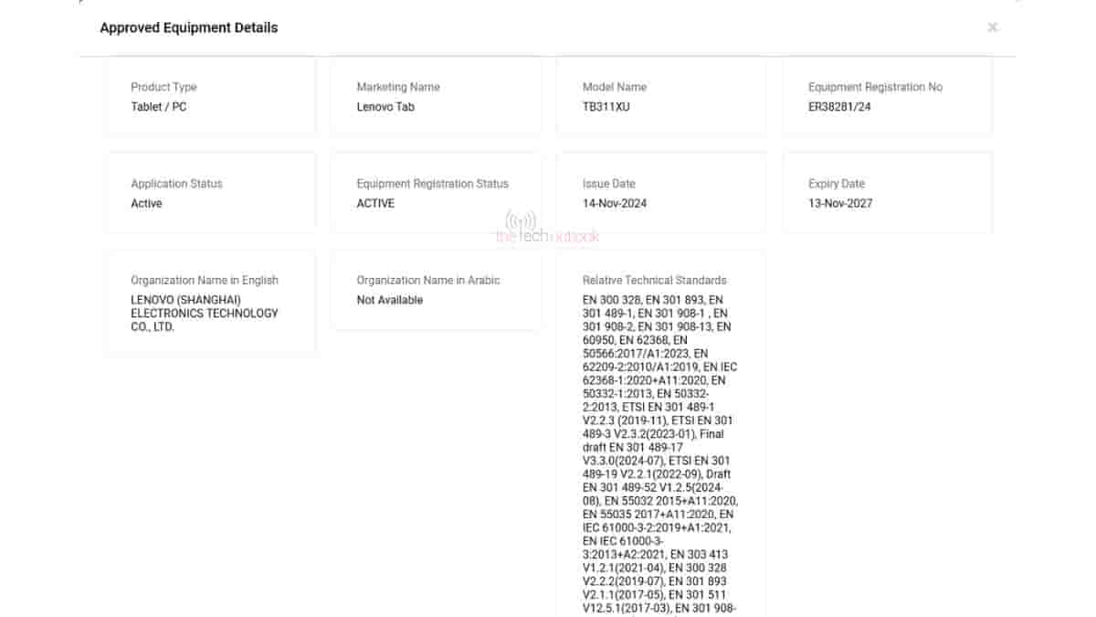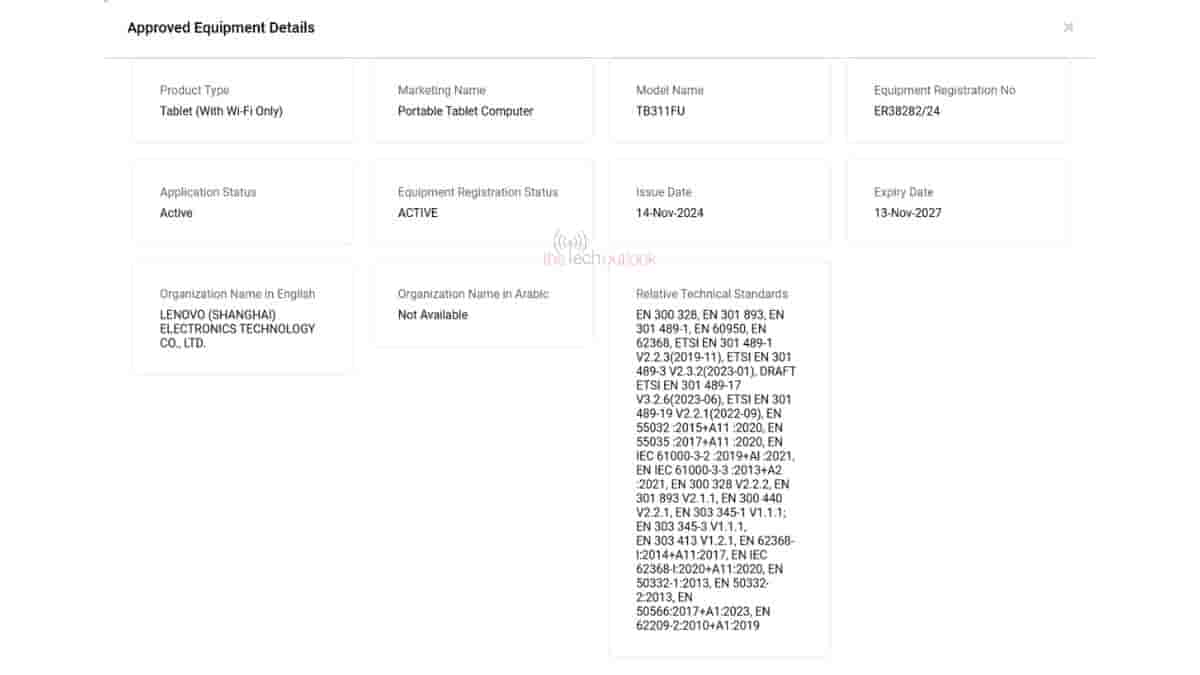 Coming to the TDRA listing, both the Wi-Fi only (TB311FU) and 4G (TB311XU) models have been certified with equipment registration numbers of ‘ER38282/24’ and ‘ER38281/24’ respectively. The certification validity will only be till the 13th of November 2027.