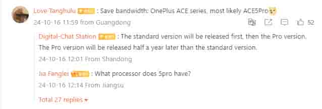 Additionally, to a query in the comment section, the tipster also mentioned that the standard Ace 5 would be arriving first, and the Ace 5 Pro launch will take place about six months later. This is similar to what happened with the previous Ace 3 series.