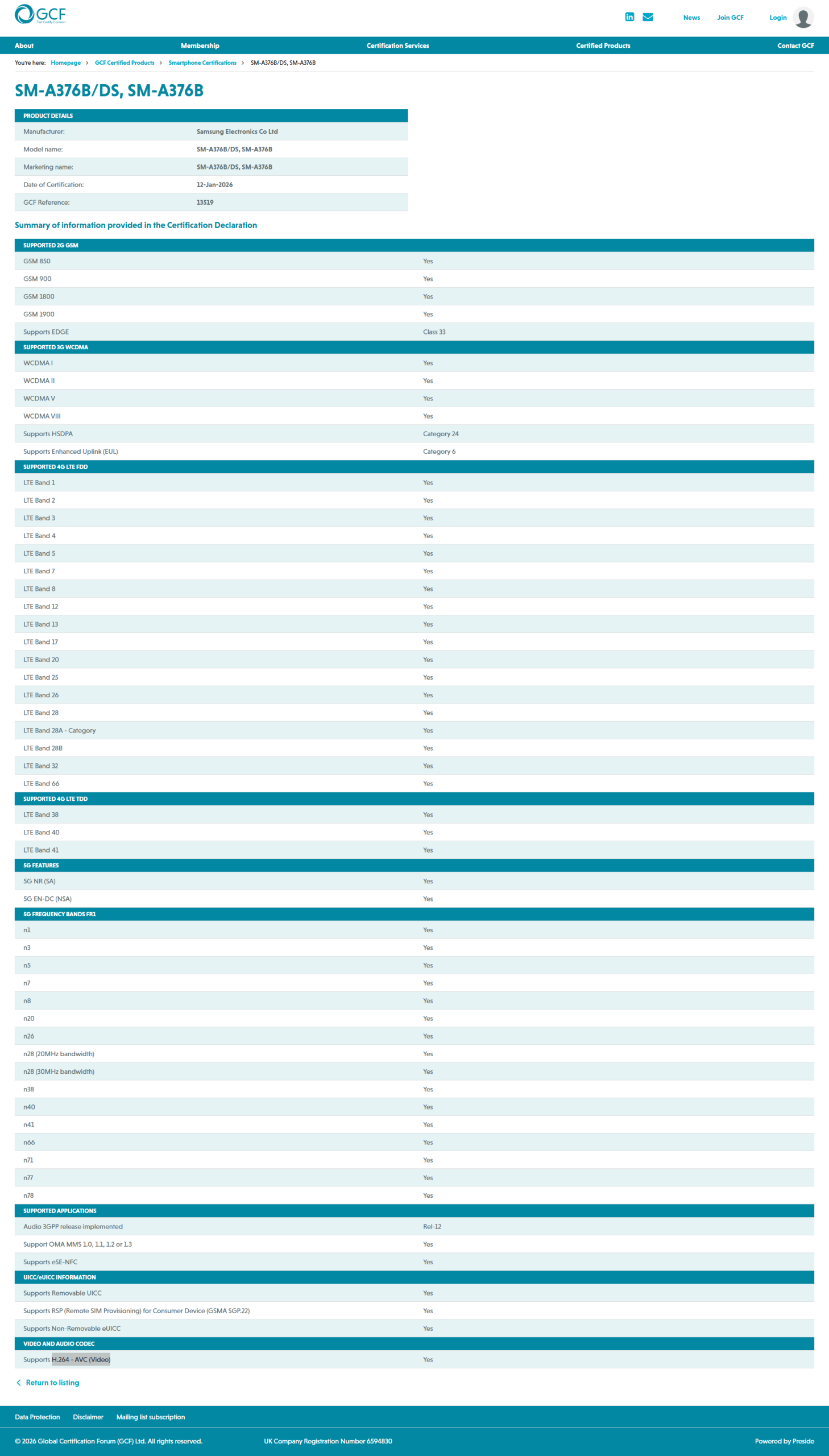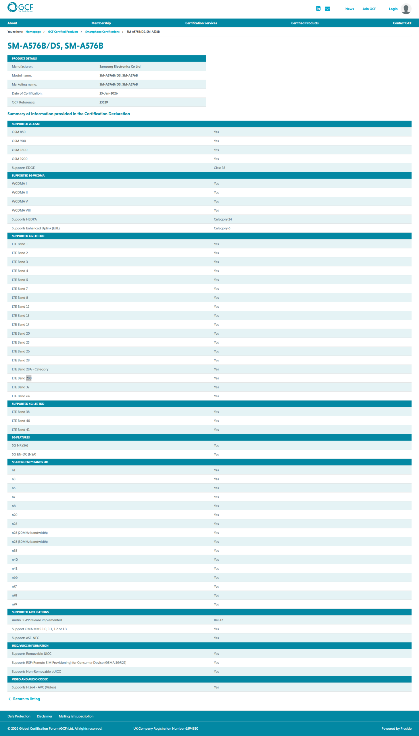 Samsung Galaxy A37 5G / Galaxy A57 5G – GCF Certification