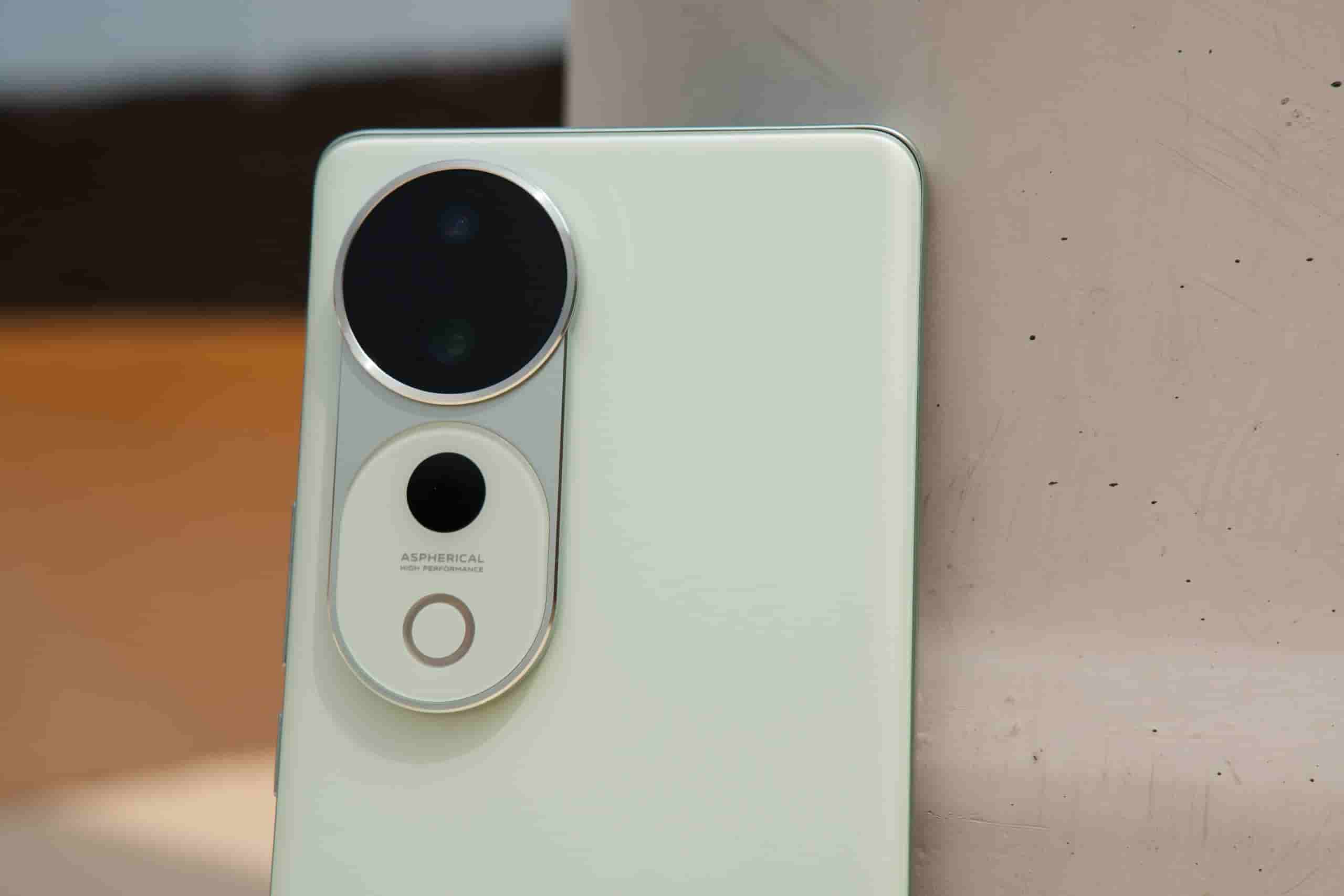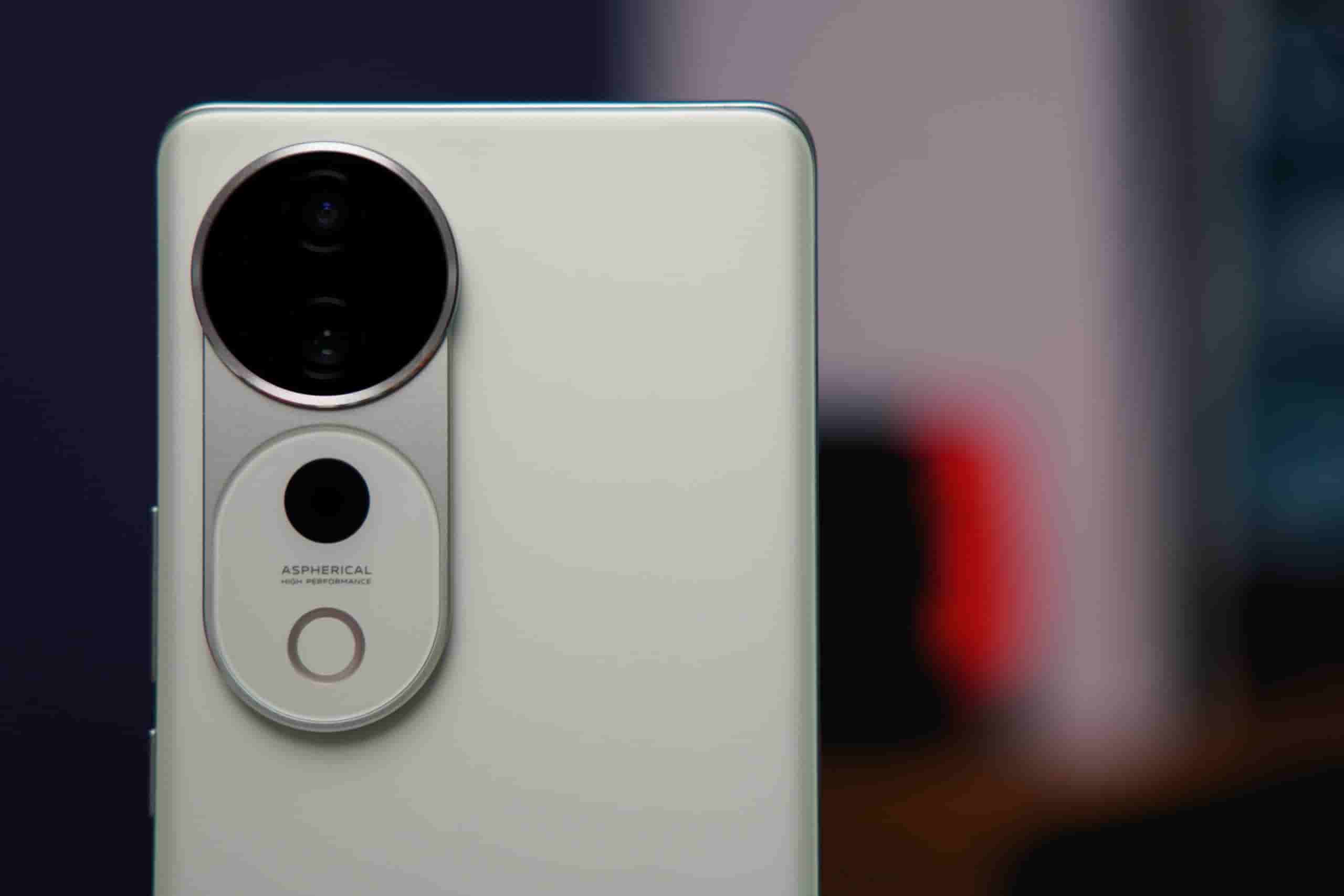 The device sports a classy and elegant look at the back. It features an ovalish shape camera module similar to what we saw in the Vivo S19 Pro smartphone. The camera module houses three camera sensors and an AURA light. The device is revealed in a green color option that is expected to be accompanied by other color options.