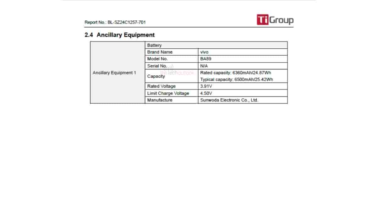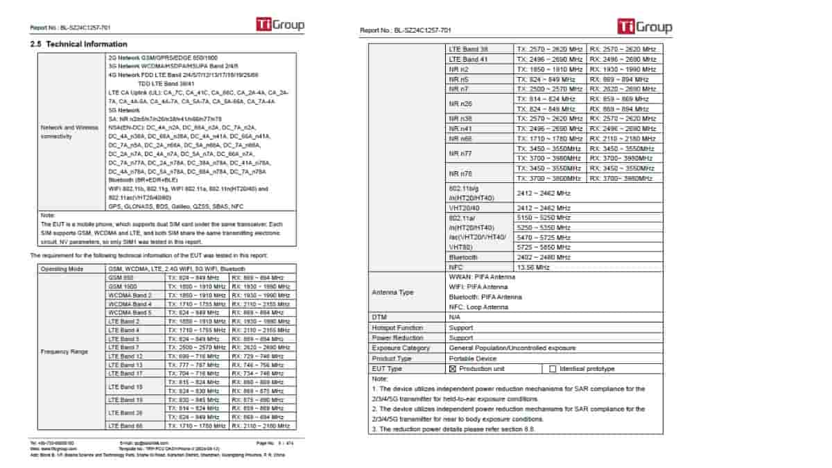 About its FCC listing, the Vivo ‘V2436’ has been certified with the FCC ID – ‘2AUCY-V2436’. The device is pointed out to measure 165.7 x 76.3 x 8.28 ~ 8.37 mm in dimension and weigh 207 gm. It will support 2G/3G/4G/5G network, WiFi 5, Bluetooth (BR + EDR + BLE), NFC, GPS, GLONASS, BDS, Galileo, QZSS, and SBAS connectivity. Moreover, a 6500 mAh typical battery (6360 mAh rated battery) will be backed within the device, with the model number – ‘BA89’. Also to add, it will be made available in an 8GB/256GB storage option too.