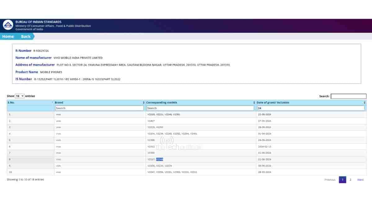 Vivo V40 with Model Number ‘V2348’ Spotted on Indian BIS Certification, Hinting at India Launch