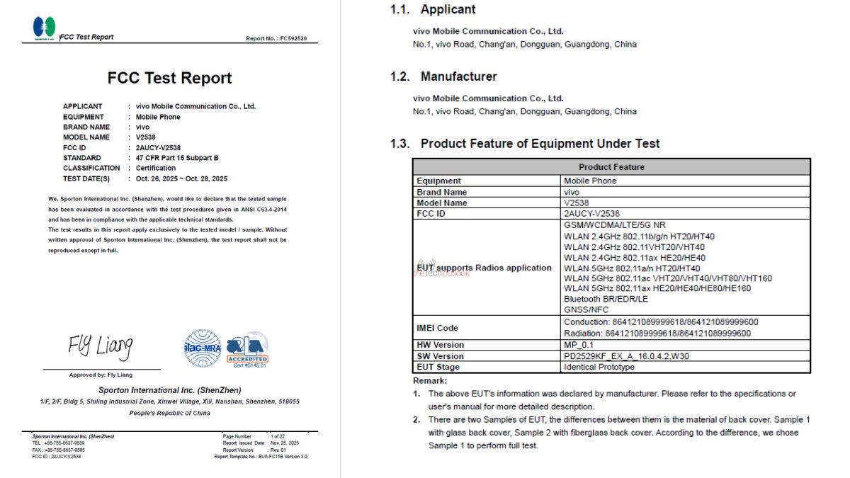 Vivo V70 5G (V2538) spotted on FCC certification, revealing 12GB + 512GB variant, Android 16, and more