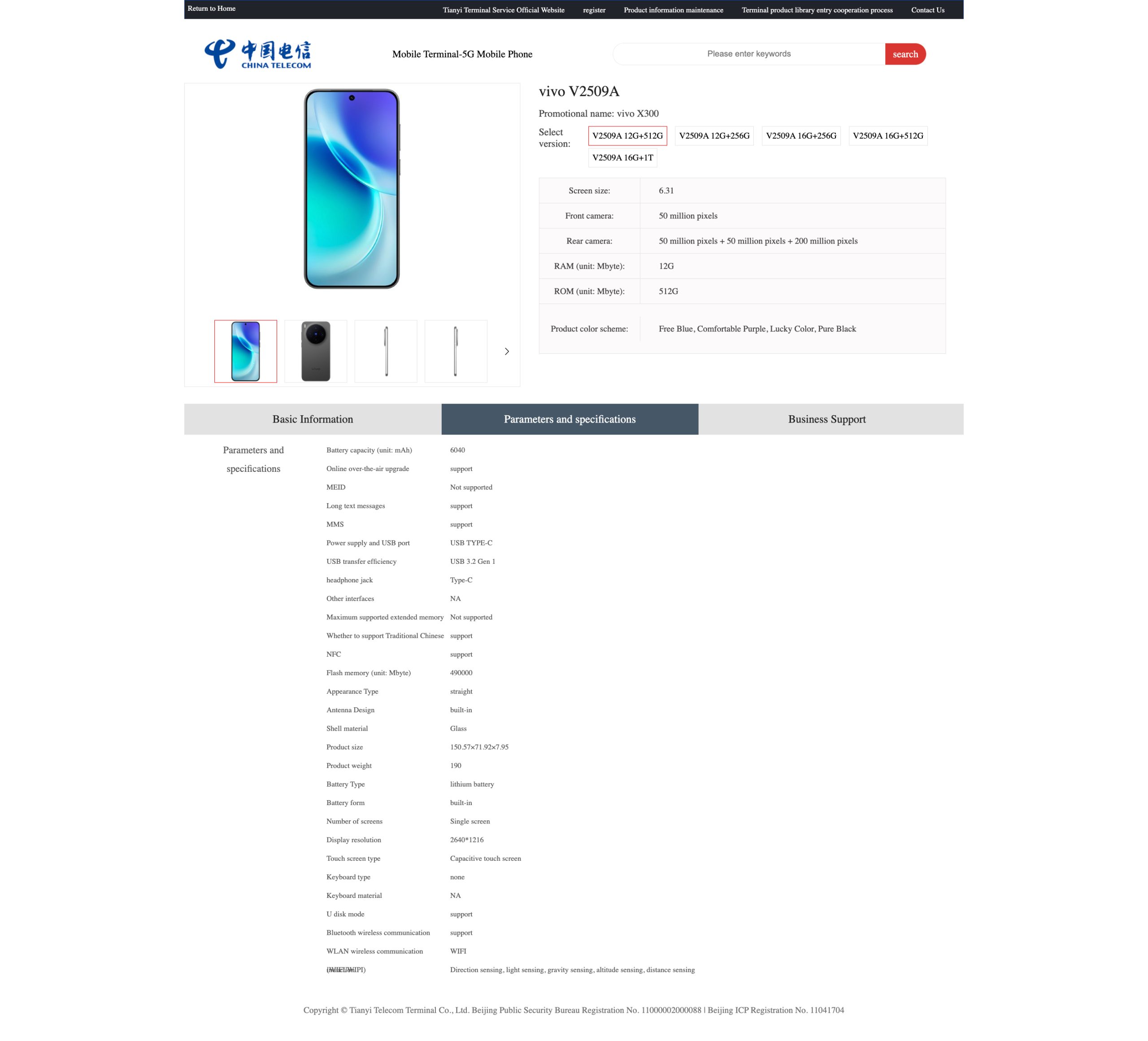 Now, adding more to that, we have spotted both the Vivo X300 and Vivo X300 Pro on the China Telecom website, revealing more specifications about these upcoming smartphones.