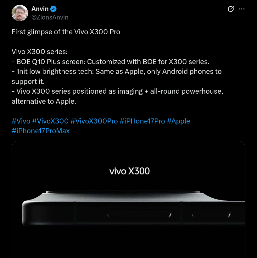 As per the details that have been revealed, the Vivo X300 series is pointed out to be positioned as an alternative to Apple’s latest iPhone 17 series in terms of camera and performance, and it is revealed to feature BOE Q10 Plus display screen and a 1-nit low brightness technology. Speaking more, the BOE display has been customized for Vivo’s X300 series, and the 1-nit low brightness technology will be same as that offered by Apple and the X300 series is claimed to become the only Android smartphones to arrive supporting it.