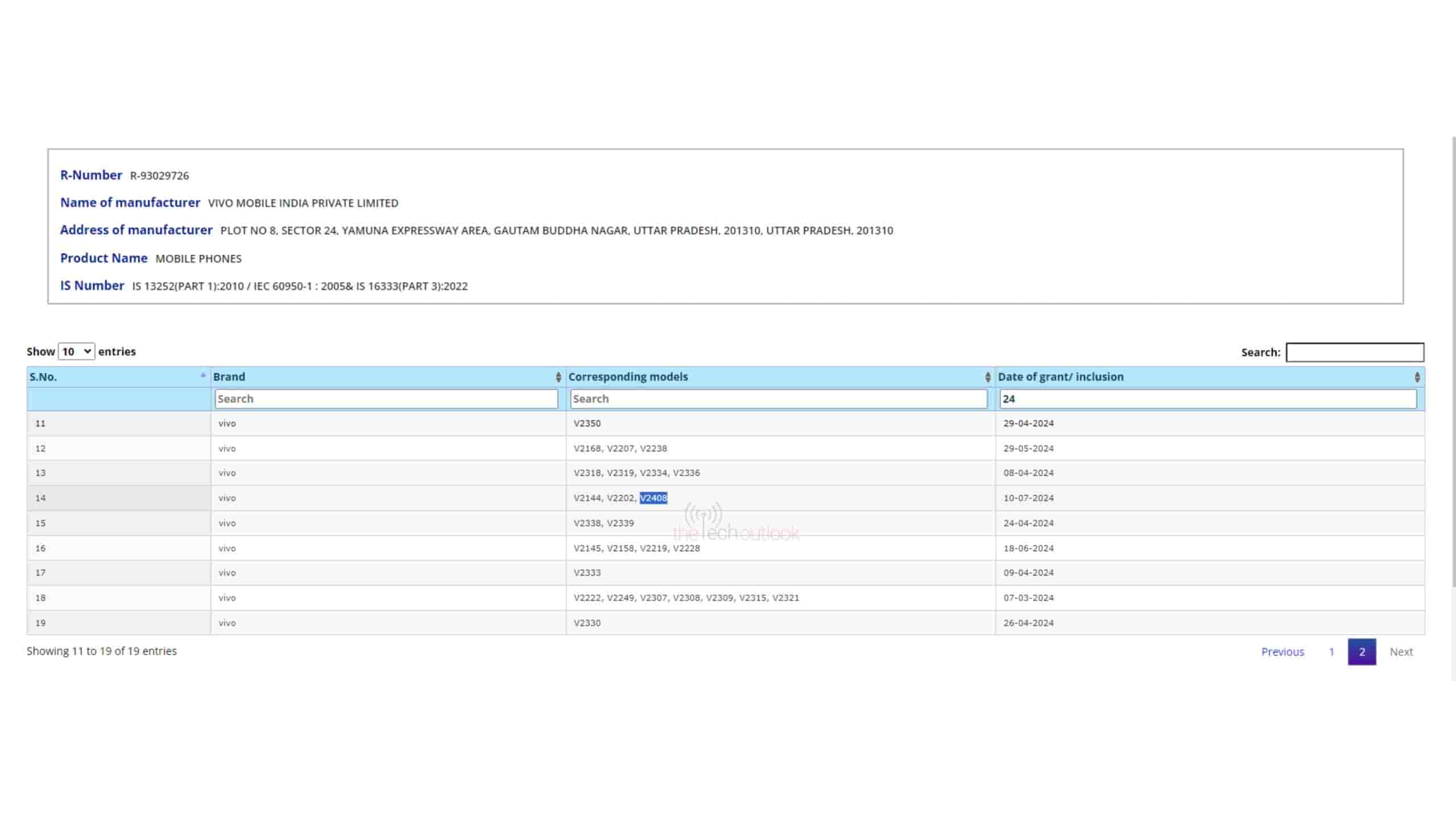 Our team at The Tech Outlook has spotted a Vivo device with model number V2408 on India’s BIS certification website.