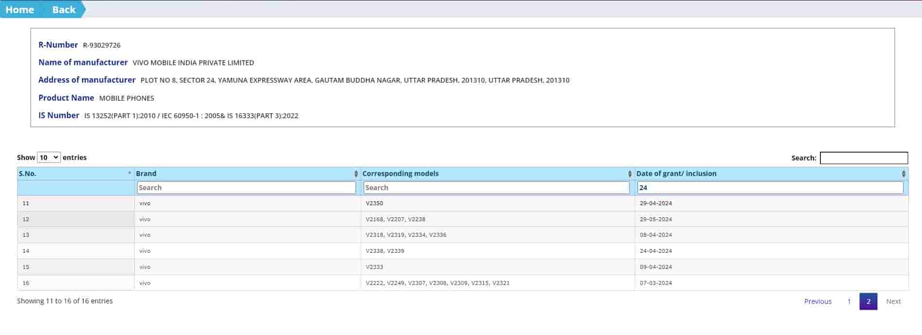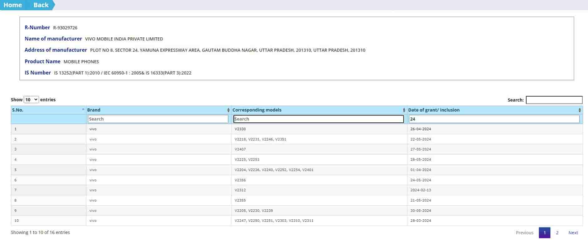Next in line is a model from the Vivo T3 series called the Vivo T3 Lite, bearing the model number “V2356” on Bluetooth SIG. This model number is also listed on the BIS India certification, indicating its launch in the Indian market.