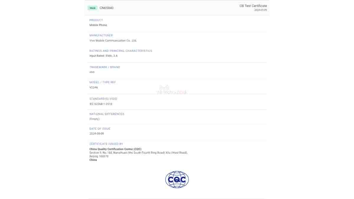 Next, we have discovered it on the CQC certification. If you look at the screen grab below, you will find the same model number “V2346”. The moniker isn’t present, but thanks to the TDRA and other previous certifications, we know it is the Y28s 5G. According to the CQC, this smartphone may feature 15W fast charging support.