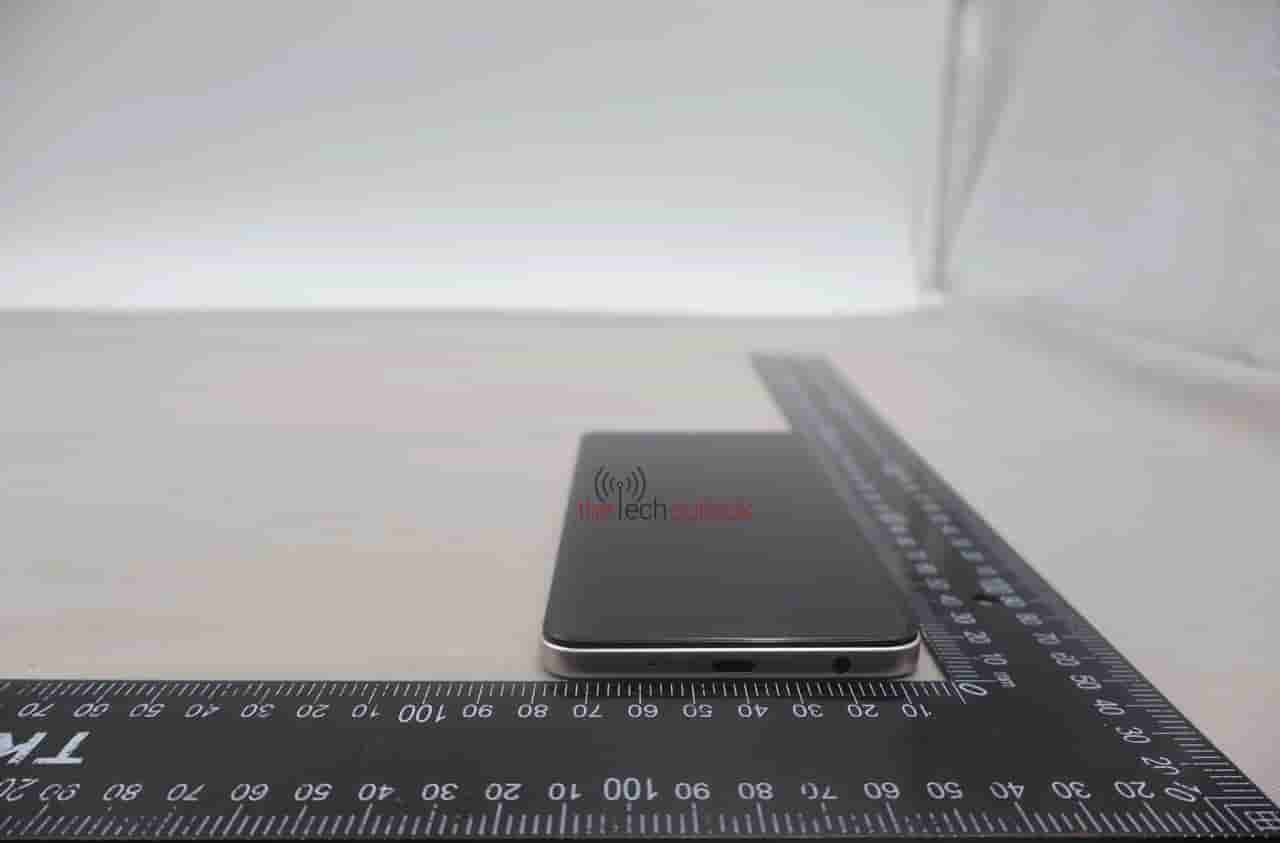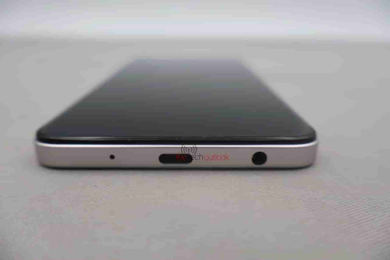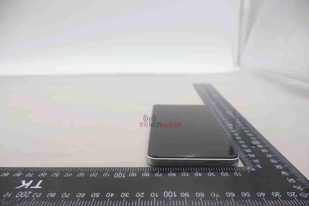 Speaking of its live images, the device is revealed to feature a flat display with a V-like notch, thin bezels, and a slightly more thicker chin. At the bottom of the smartphone, we can find the microphone hole, USB Type-C charging interface, and a 3.5 mm headphone jack. The speaker holes can be found at the top. The volume rocker and power button are placed on the right side panel. Also to note, the power button also seems to be an integrated side-mounted fingerprint scanner too. At the left side panel, there is the card tray at the top portion.