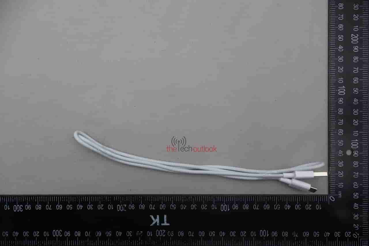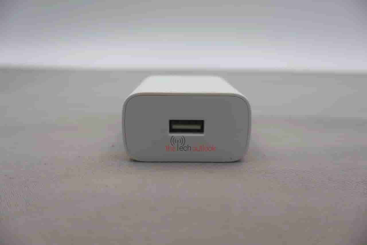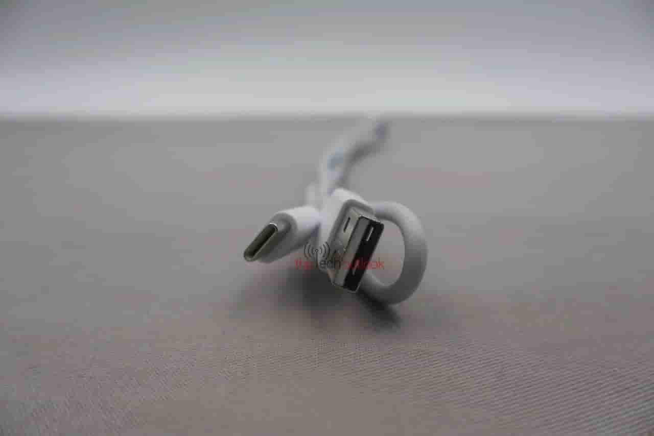 Regarding the charging brick, it comes in a White color and has a USB Type-A port. The charging cable is also White in color and is a USB Type-A to USB Type-C cable.