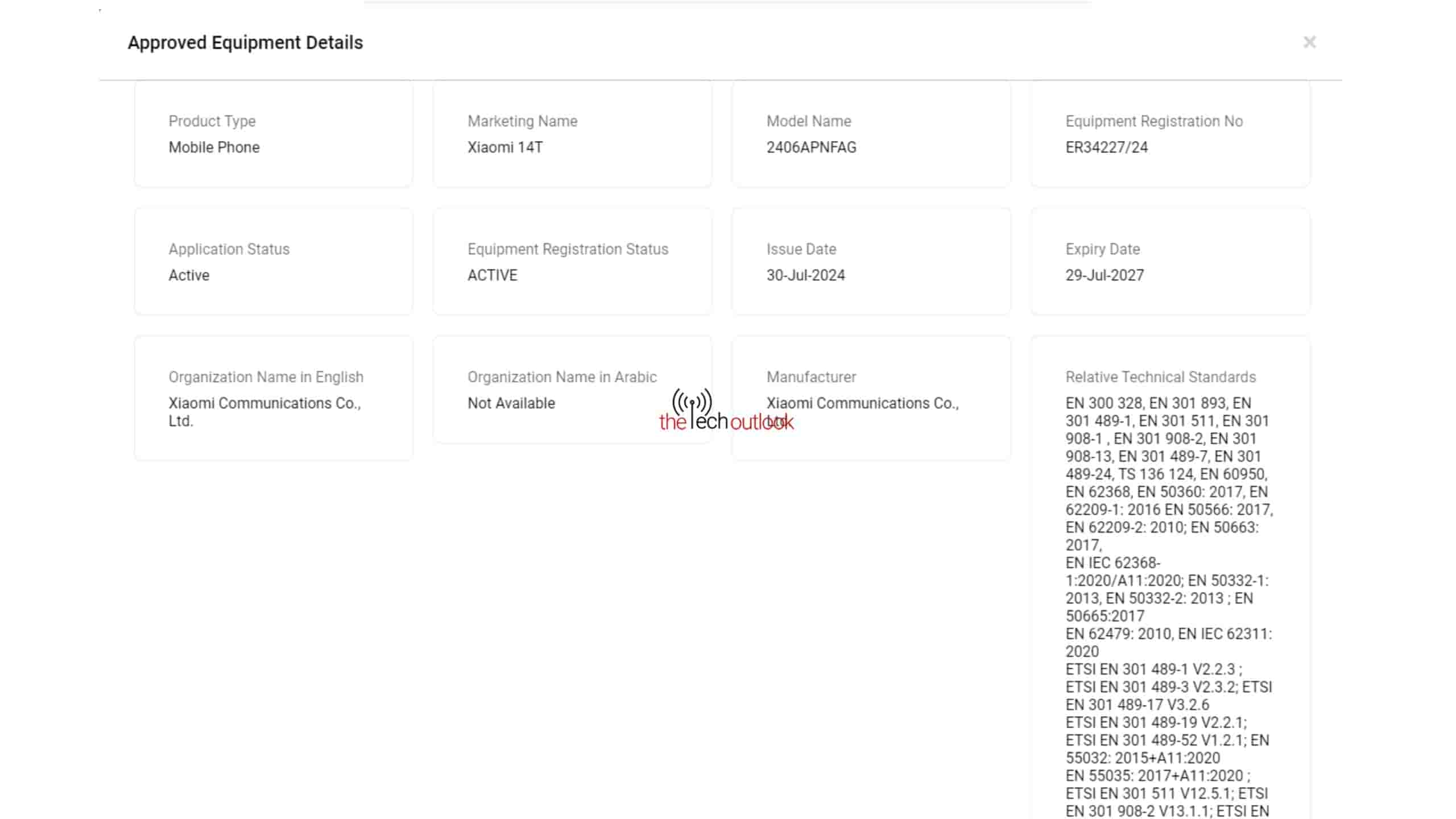 The Tech Outlook has today spotted the Xiaomi 14T on UAE’s TDRA certification website with model number 2406APNFAG.