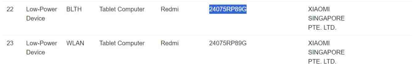 Moving onto the new Redmi Tablet, which has been sighted with the model number “24075RP89G”. Similar to the Xiaomi 14T, the moniker is absent from the listing. This couldn’t be the Redmi Pad Pro 5G because this model number doesn’t match the earlier leaks, so it could be a new one altogether. However, the IMDA reveals it to be a non-LTE version.