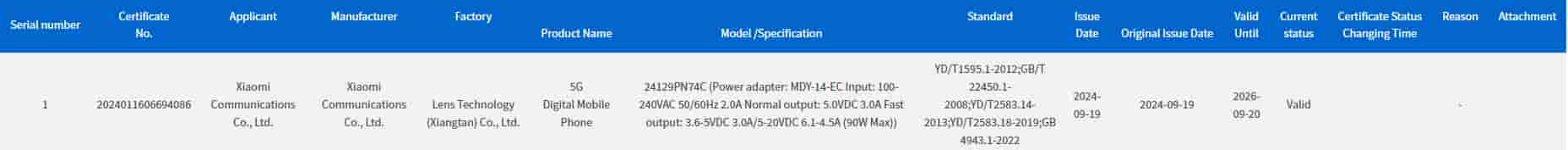 Xiaomi 15 clears chinese 3C certification revealing it will come with 90W fast charging support