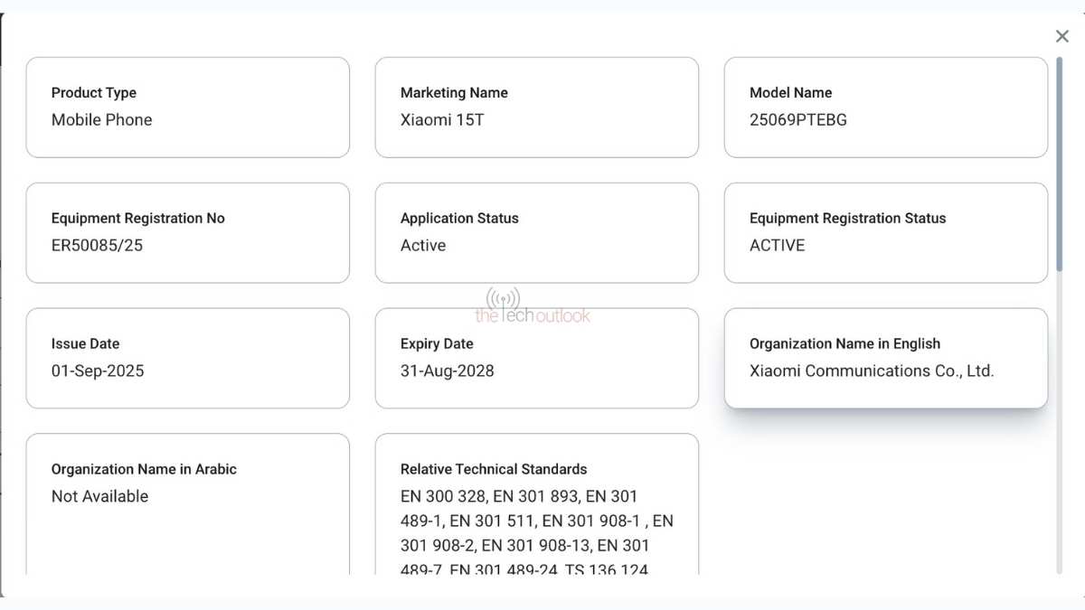 The Xiaomi 15T and Xiaomi 15T Pro smartphones carrying the respective model numbers of ‘25069PTEBG’ and ‘2506BPN68G’ have received the TDRA certification from UAE, and these are their global variants (as indicated by the ‘G’ in the model numbers). Both of them have been certified by the TDRA authority with the equipment registration numbers of ‘ER50085/25’ and ‘ER50084/25’ respectively, and their certification validity is till the 31st of August 2028. Also to add, the TDRA certification mentions their monikers and has confirmed the launch of the Xiaomi 15T and Xiaomi 15T Pro smartphones in the UAE market.