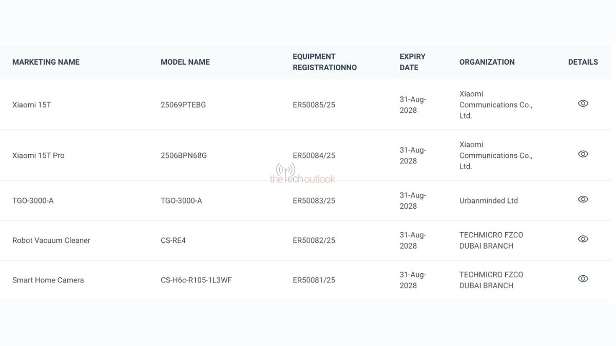 Xiaomi 15T and Xiaomi 15T Pro – TDRA Certification