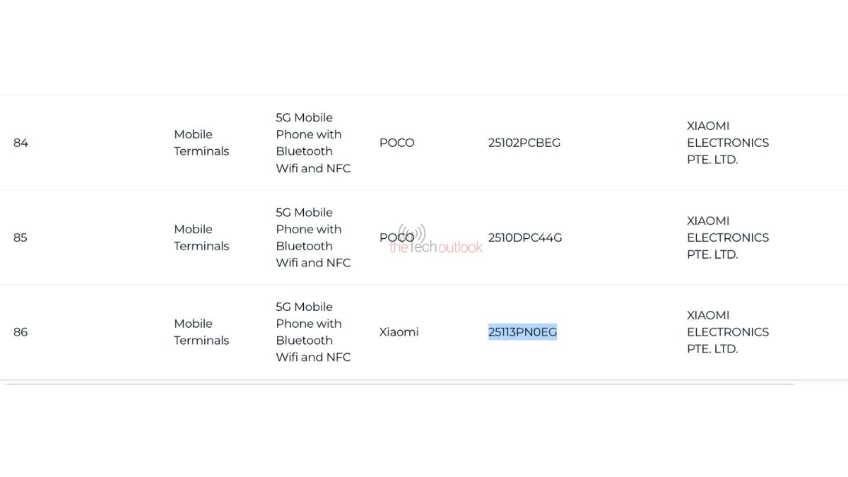 Lastly, the model number “25102PCBEG” appears in the listing with the brand name Poco. This model number was also seen earlier on the NBTC certification, which revealed its moniker to be the Poco F8 Ultra. The device is expected to be a rebranded version of the Redmi K90 Pro Max, suggesting it will feature the Snapdragon 8 Elite Gen 5 SoC.