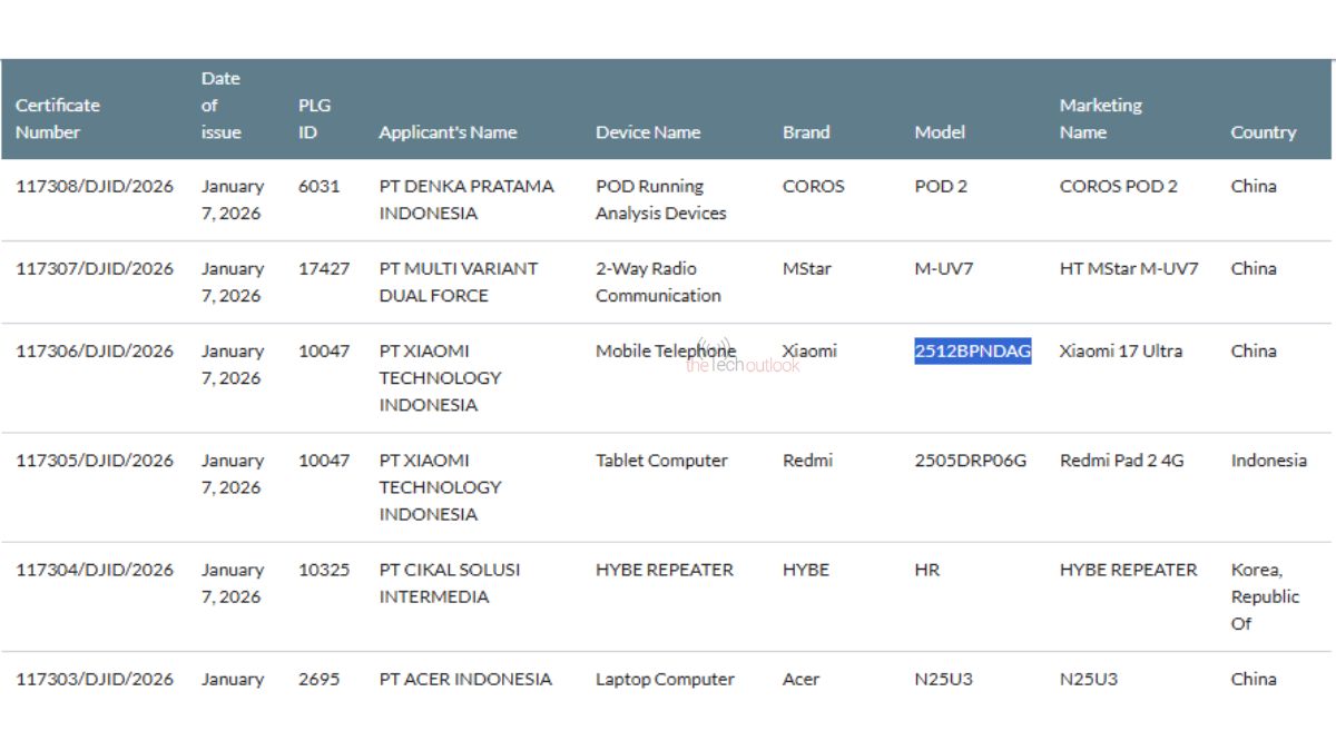 Xiaomi 17 Ultra Global Variant With Model Number “2512BPNDAG” Spotted on Indonesian SDPPI Database