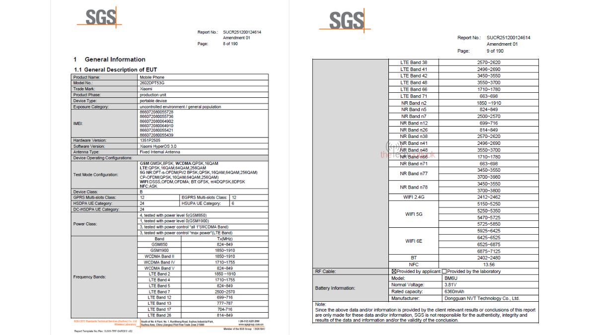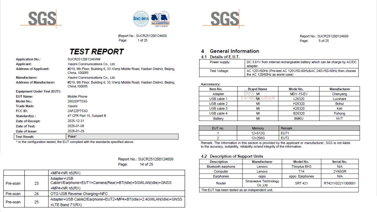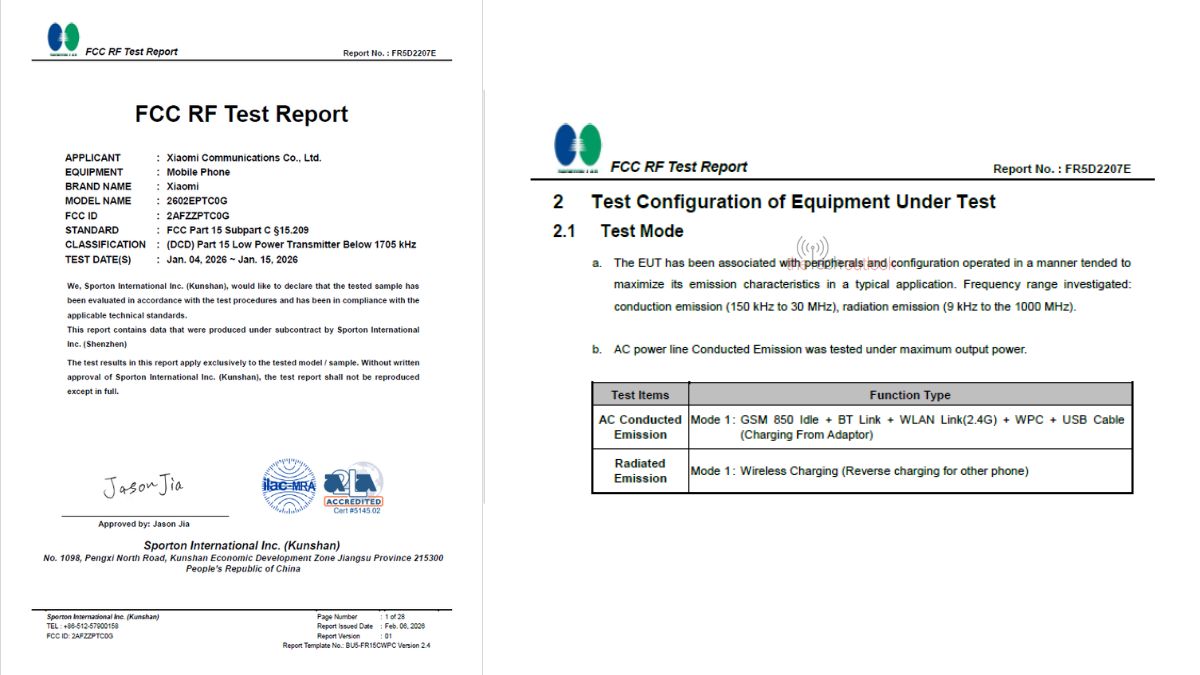 Apart from the Xiaomi 17T, its Pro variant is also found listed on the FCC certification with the FCC ID ‘2AFZZPTC0G’, and model number ‘2602EPTC0G’.