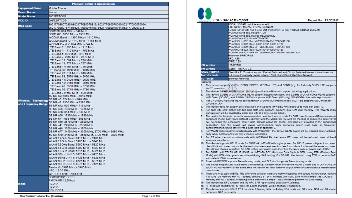 Xiaomi 17T Pro – FCC Certification