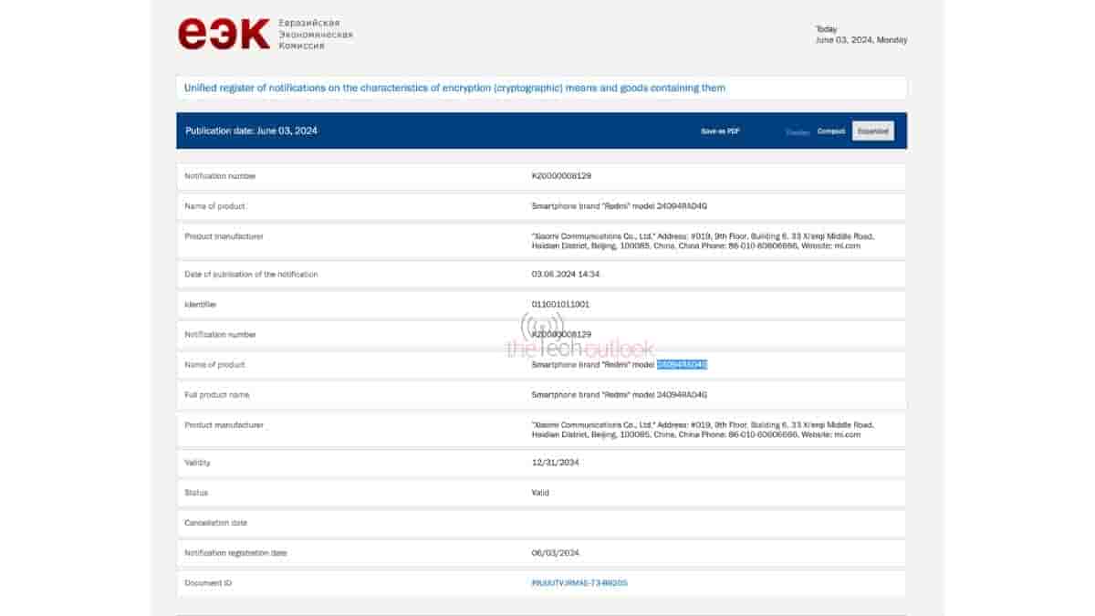 Along with these devices, two Redmi smartphones with the model numbers 24094RAD4G and 24115RA8EG have also appeared on the EEC certification website. The listing does not confirm the moniker and once again these smartphones have earlier not been reported to have appeared on certification websites. As per the model number of these smartphones, these devices should be launched between October to December.
