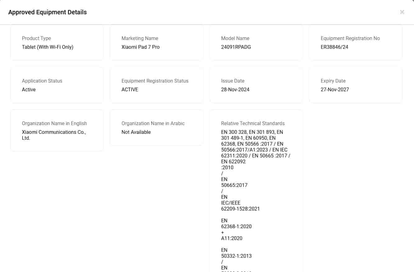 Xiaomi Pad 7 And Xiaomi Pad 7 Pro Tablets Spotted On TDRA Certification Website