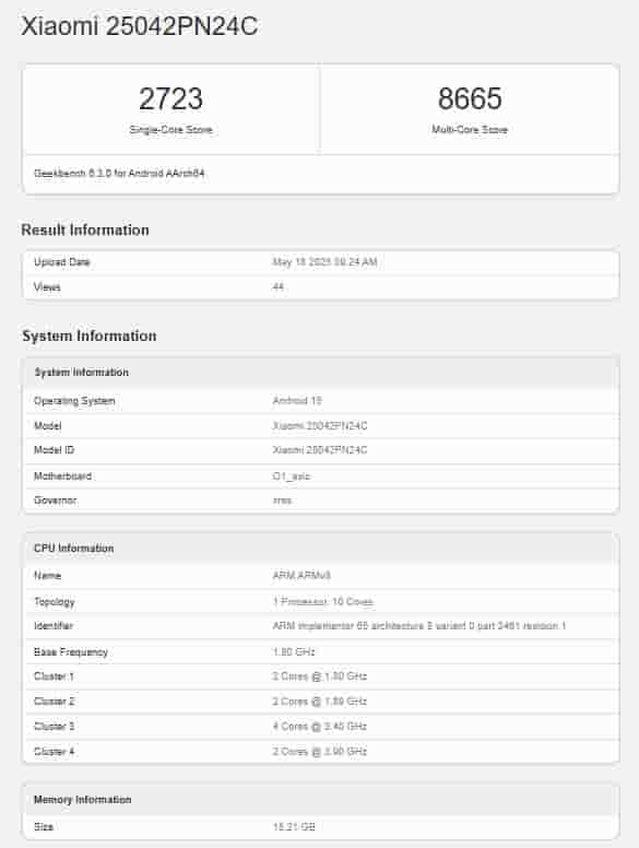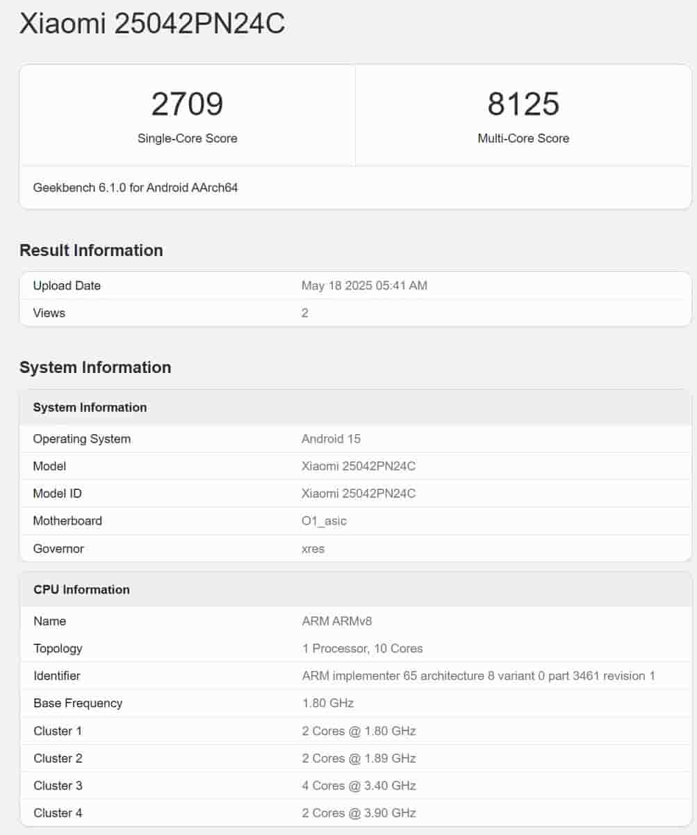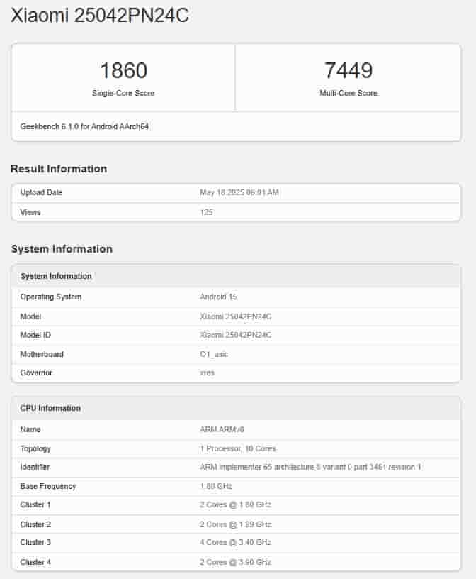 These below-shared Geekbench listings are of the Xiaomi ‘25042PN24C’, and this device was previously identified as the possible Xiaomi 15s Pro and was spotted both on the 3C and MIIT certification platforms. As per the Geekbench listings, this device could be coming equipped with Xiaomi’s upcoming XRING O1 and speaking of the chip performance, notably it is more powerful than last year’s Snapdragon 8 Gen 3 but not as powerful as this year’s Snapdragon 8 Elite.