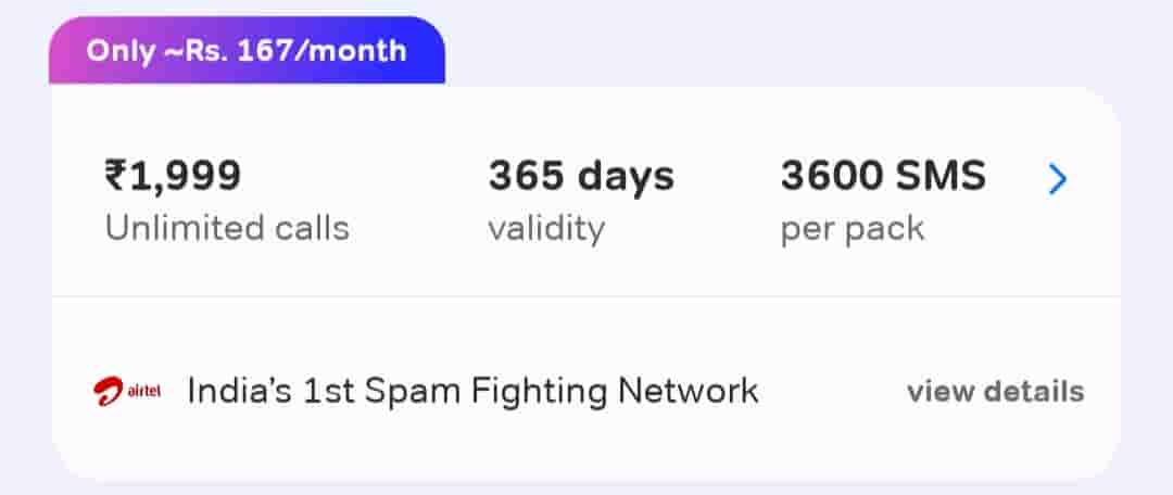 The second plan is valued at Rs 1999 and arrives with 365 days of validity. It comes with benefits like Unlimited local STD & Roaming calls, and 3600 SMS whereas additional benefit includes suspected spam alert for Spam calls and SMS, free content on the Airtel Xstream app, free Hello tunes, and 3 month subscription to Apollo 24/7 Circle.