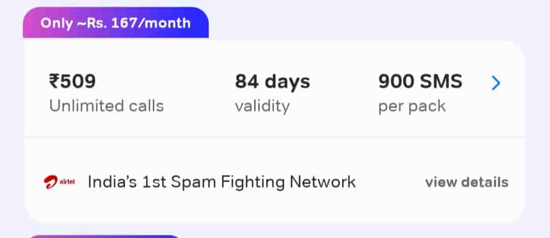 The first plan is valued at Rs 509 and arrives with 84 days validity and offers benefits like Unlimited local STD & Roaming calls, and 900 SMS while additional benefits include suspected spam alert for Spam calls and SMS, free content on Airtel Xstream app, free hello tunes and 3 months subscription for Apollo 24/7 circle.