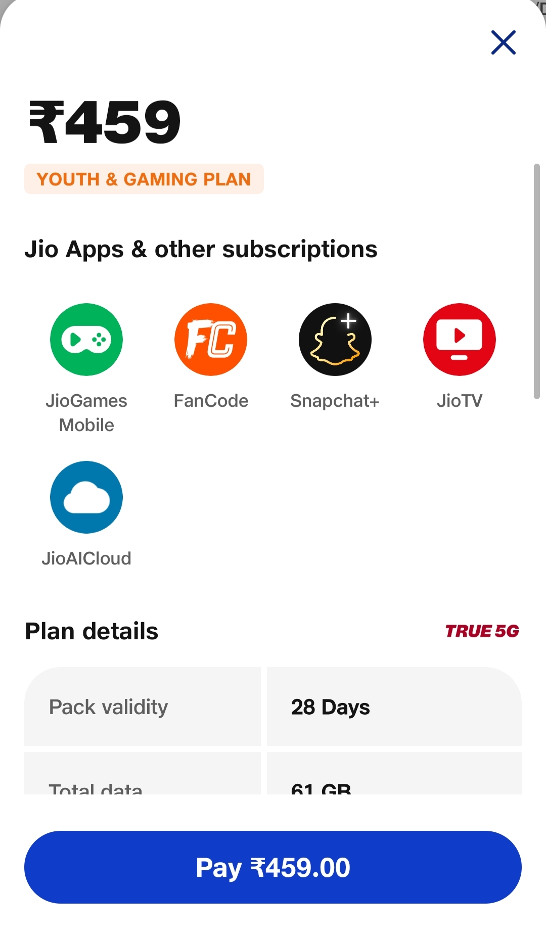 Rs 459 Youth & Gaming Plan